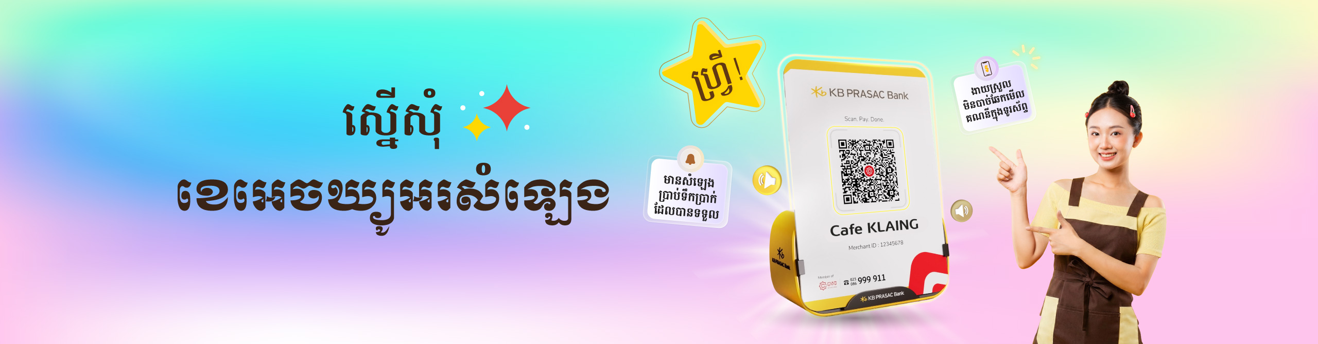 អ្វីដែលកាន់តែប្រសើរសម្រាប់ពាណិជ្ជករ គឺអាចទទួលការស្កេន-ទូទាត់ ថ្លៃទិញទំនិញ ឬ សេវាកម្មពីគ្រប់ធនាគារនៅកម្ពុជា ហើយទទួលការដំឡើងកម្មវីធីពាណិជ្ជករនៅលើទូរស័ព្ទដៃ (KB PRASAC Merchant App) ដើម្បីគ្រប់គ្រងការទូទាត់លើមុខជំនួញរបស់ខ្លួនបានយ៉ាងងាយស្រួល គ្រប់ទីកន្លែង គ្រប់ពេលវេលា។