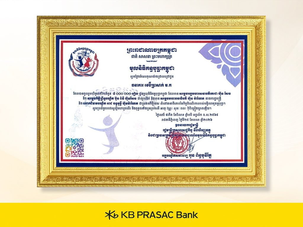 ខេត្តសៀមរាប៖ ធនាគារ ខេប៊ីប្រាសាក់ មានមោទនភាពក្នុងការចូលរួមជាអ្នកឧបត្ថម្ភព្រឹត្តិការណ៍ដ៏ធំប្រចាំឆ្នាំ «ទិវាធានារ៉ាប់រងកម្ពុជា 2026» ដែលបានប្រព្រឹត្តទៅនៅថ្ងៃទី 25-26 ខែមេសា ឆ្នាំ 2026 នៅសួនច្បារព្រះរាជដំណាក់ ក្នុងខេត្តសៀមរាប។ ធនាគារ ខេប៊ីប្រាសាក់ ក៏បានបរិច្ចាគថវិកាជូនដល់មូលនិធិគន្ធបុប្ផាកម្ពុជា តាមរយៈនិយ័តករធានារ៉ាប់រងកម្ពុជា ដើម្បីជួយទ្រទ្រង់ដល់មន្ទីរពេទ្យគន្ធបុប្ផាក្នុងការផ្តល់សេវាព្យាបាលដោយឥតគិតថ្លៃសម្រាប់កុមារកម្ពុជា។